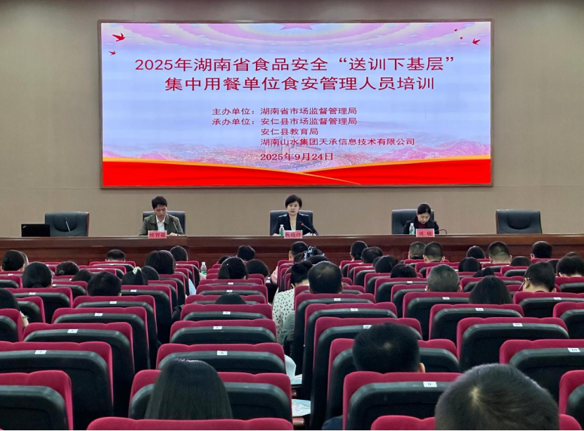 9月24日上午,湖南省安仁县正在县西医院学术大厅开展2025食物平安“送训下下层”勾当。本次勾当由湖南省市场监管局同一摆设,安仁县市场监管局、县教育局取湖南山川集团天承消息手艺无限公司协同承办,聚焦集顶用餐单元食物平安。培训以“强化义务担任,提拔办理能力”为从题,全县食安委单元、学校、医疗机构、养老机构等276家单元的食物平安办理人员加入培训。